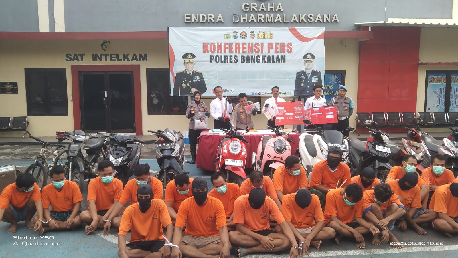 ” Pada kasus narkotika juga mengalami penurunan, jika di bulan mei terdapat 16 kasus, di bulan ini ada 15 kasus narkoba dengan tersangka sebanyak 22 orang ” Ujar Kapolres Bangkalan, Senin (30/06/25).